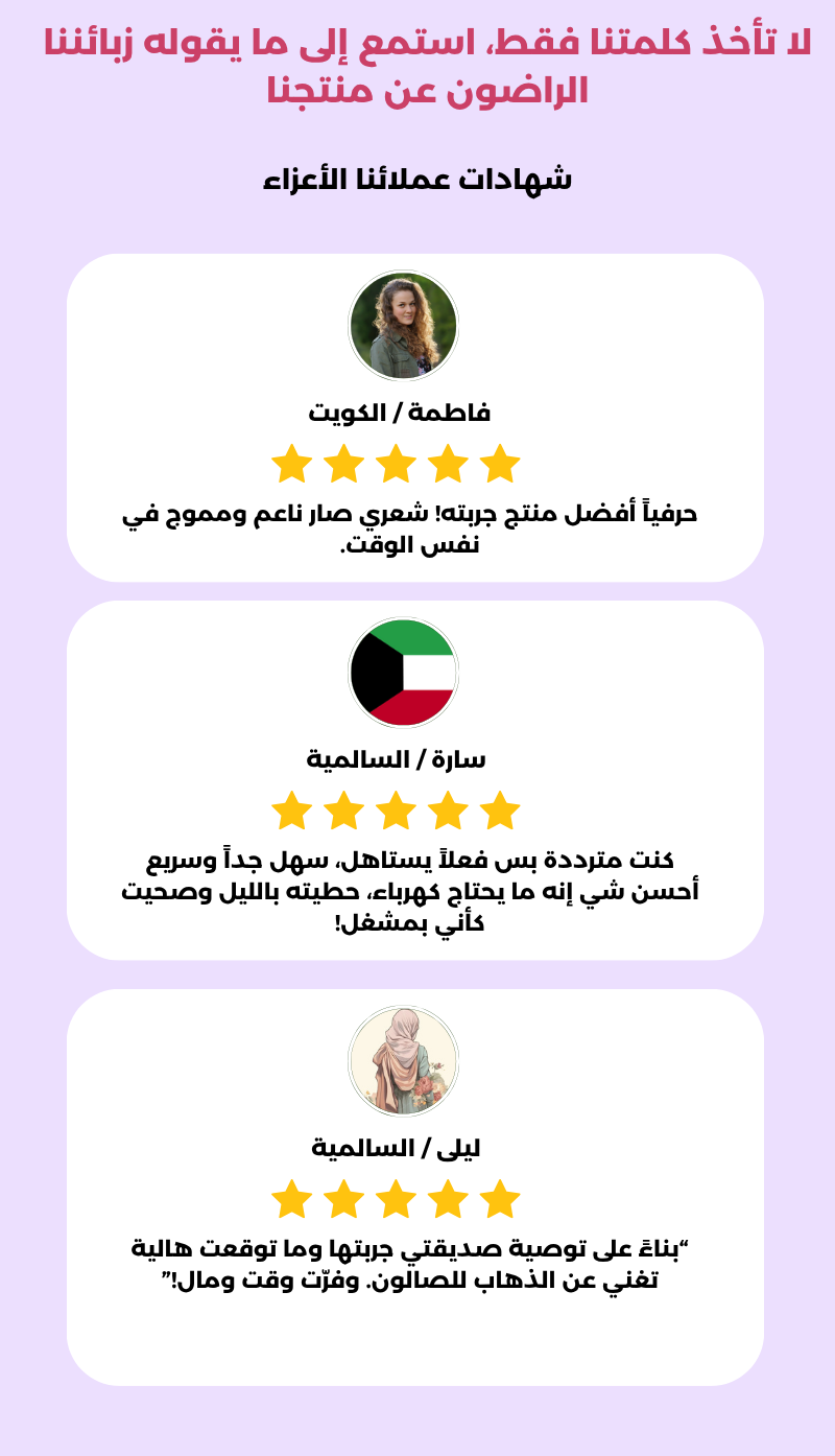 كما نقدم خدمة ما بعد البيع تشمل المتابعة والدعم الفني لضمان رضاكِ التام.