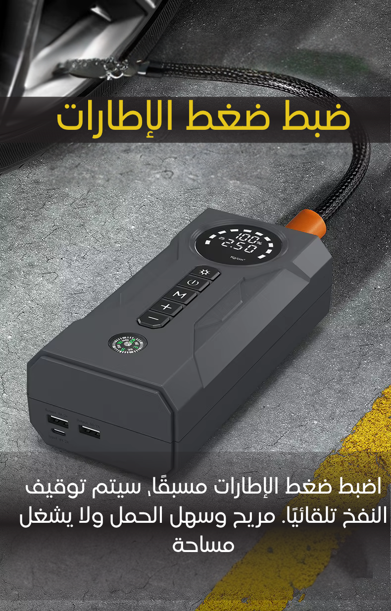 شاحن بطارية + منفاخ هواء + كشاف ضوء + بنك طاقة = كل ما تحتاجه في السيارة في جهاز واحد صغير الحجم وسهل الحمل.